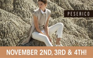 We will be offering 30% off all Fall/Winter Peserico and D.Exterior items during the Spring Peserico trunk show only! Luxurious, Sophisticated, Made in Italy. Rep. Beatriz will be present to assist in fittings and selections.