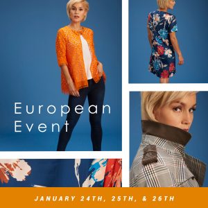 Please join us for The European Event, January 24th-26th, featuring Algo of Switzerland. Flaunt your unique style in splashes of tangerine, exuberant pinwheels and florals, and red polka dots designed to turn heads and break hearts.