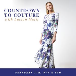 Please join us for The Countdown to Couture Event with Lucian Matis on February 7th, 8th, and 9th. Find dresses, special suiting and gowns in ultra-flattering silhouettes, with glamorous feminine details and custom design features.
