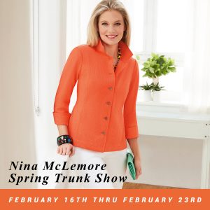 Please join us to discover the collection that celebrates women February 16th thru February 23rd. Complimentary alterations on all trunk show purchases!